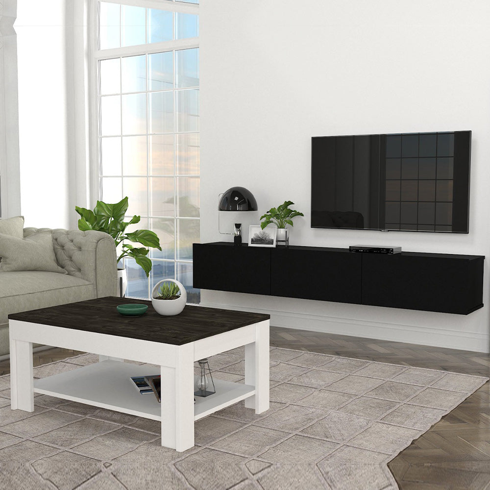 Pack DODAME - Meuble TV suspendu et Table basse - Noir et blanc